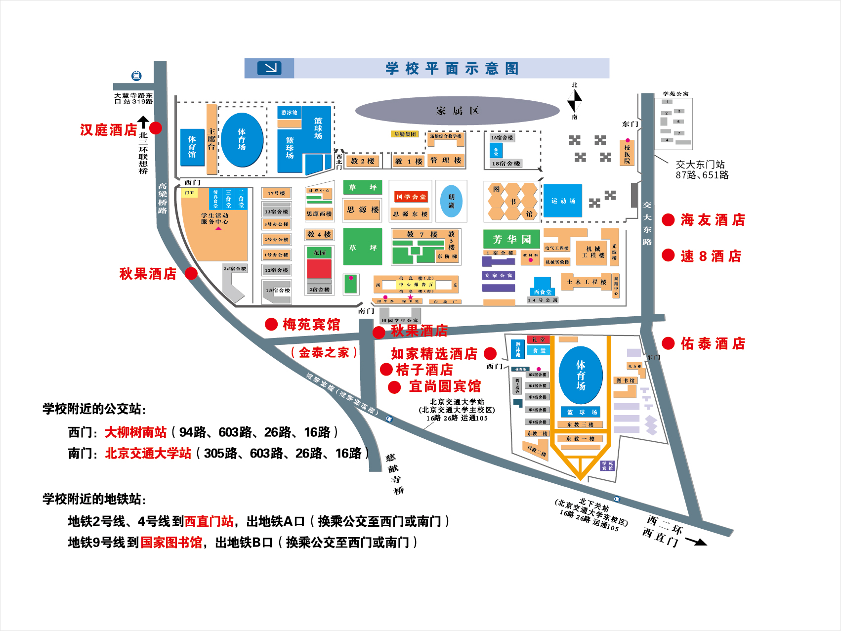 学校南门、西门附近酒店如下图,如有需要,考生可自行联系解决住宿。