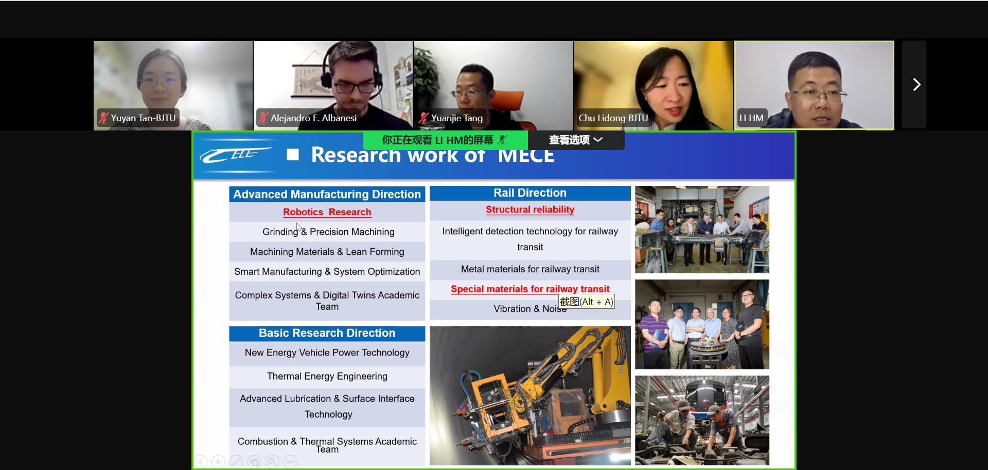 国际处副处长谭宇燕代表学校介绍了我校的整体发展情况。运输学院副院长唐源洁、机电学院副院长李洪萌分别介绍了各自学院的办学特色和国际合作基础。双方重点围绕联合科研、中外合作办学、国际会议等议题开展深入交流,并就推进下一步实质性合作达成初步共识。