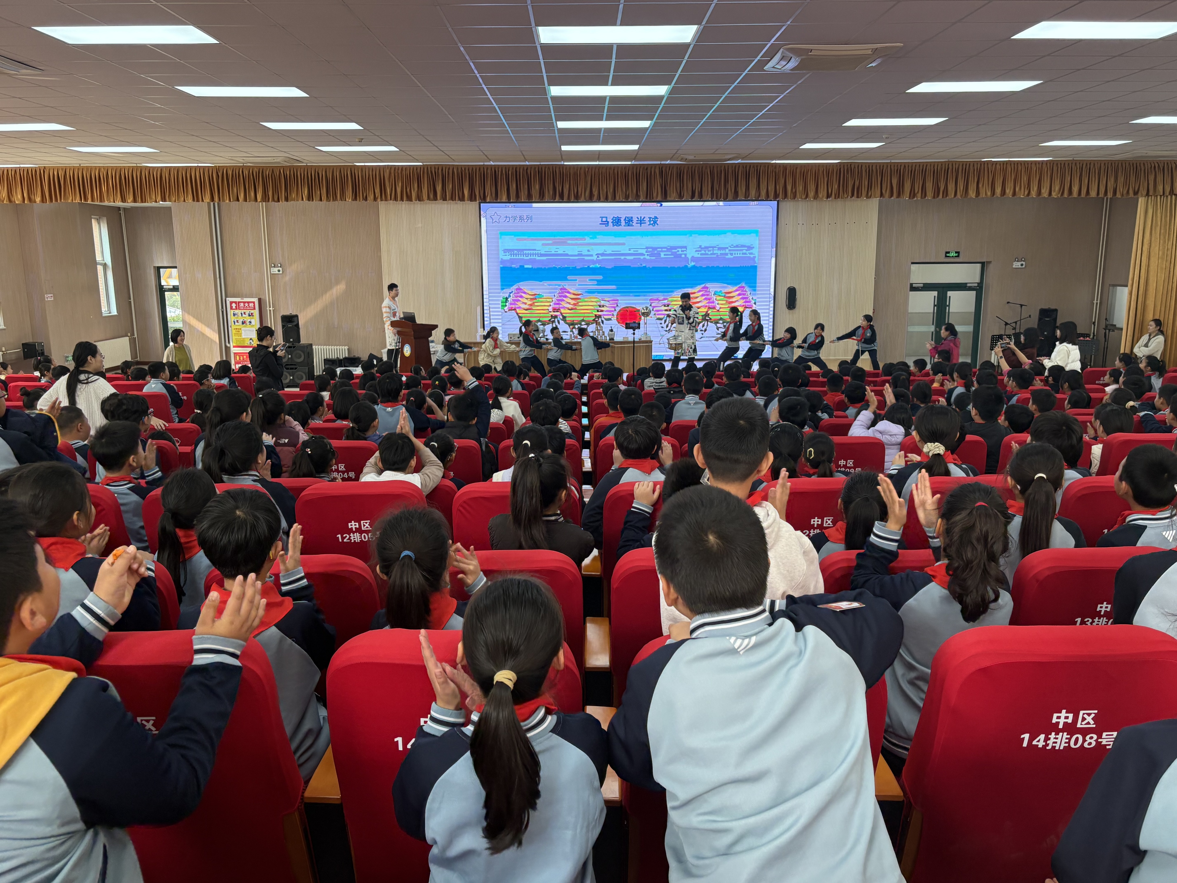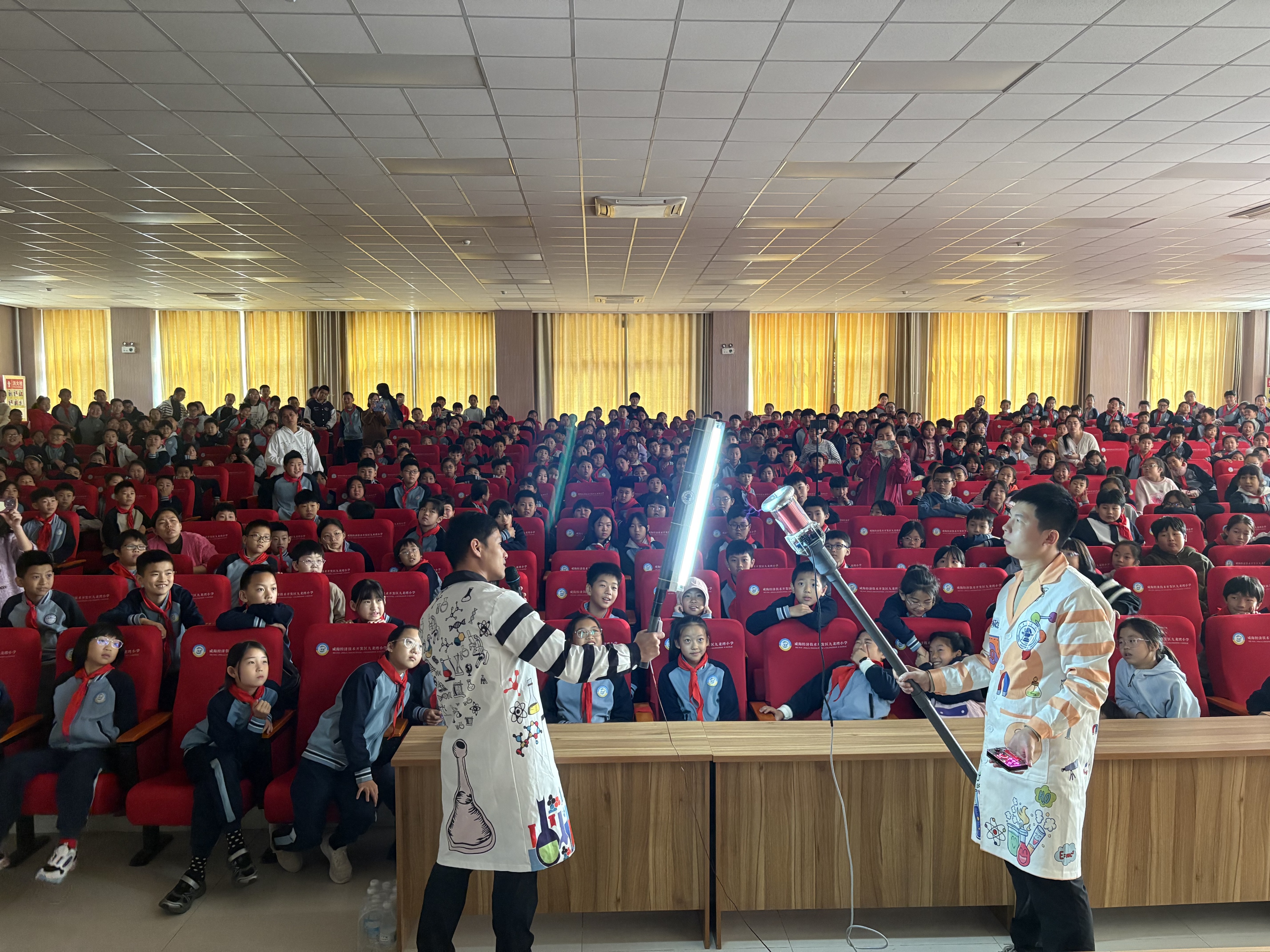 At the invitation of the Education and Sports Service Center of Weihai Economic and Technological Development Zone, on November 7th, experimental teachers from the Popular Science Base of BJTU Weihai Campus of Beijing Jiaotong University visited Weihai Jiulongwan Primary School to participate in the themed "Empowering with Vitality, Creating and Sharing the Future" Science and Technology Festival activities and conducted a science popularization experiment show.
