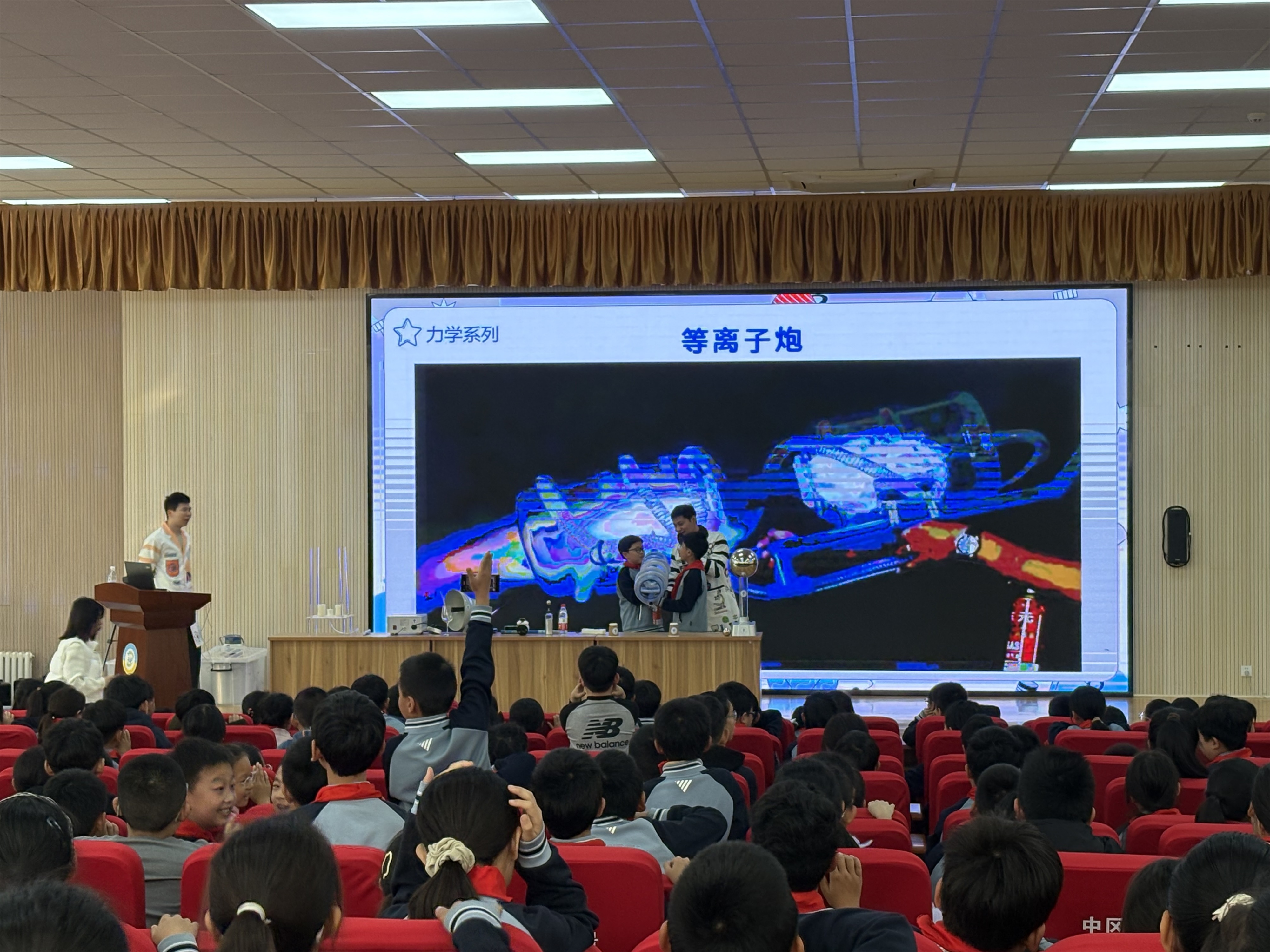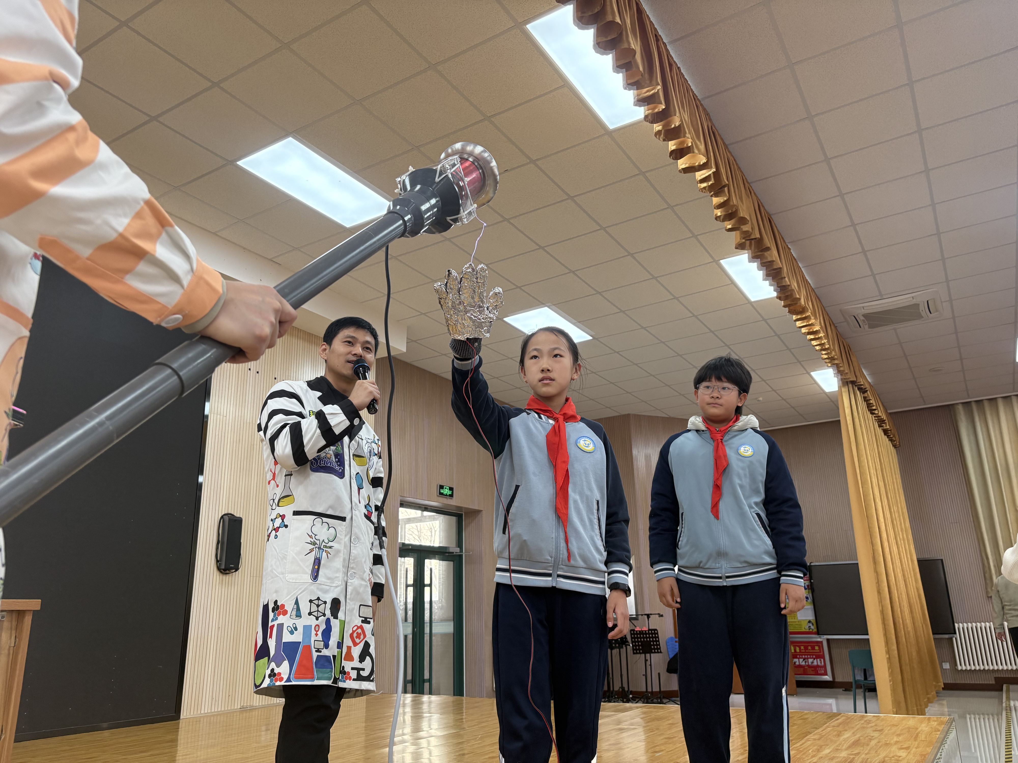 在互动阶段,团队邀请学生登台参与科普实验,亲身感受科学的神奇魅力。