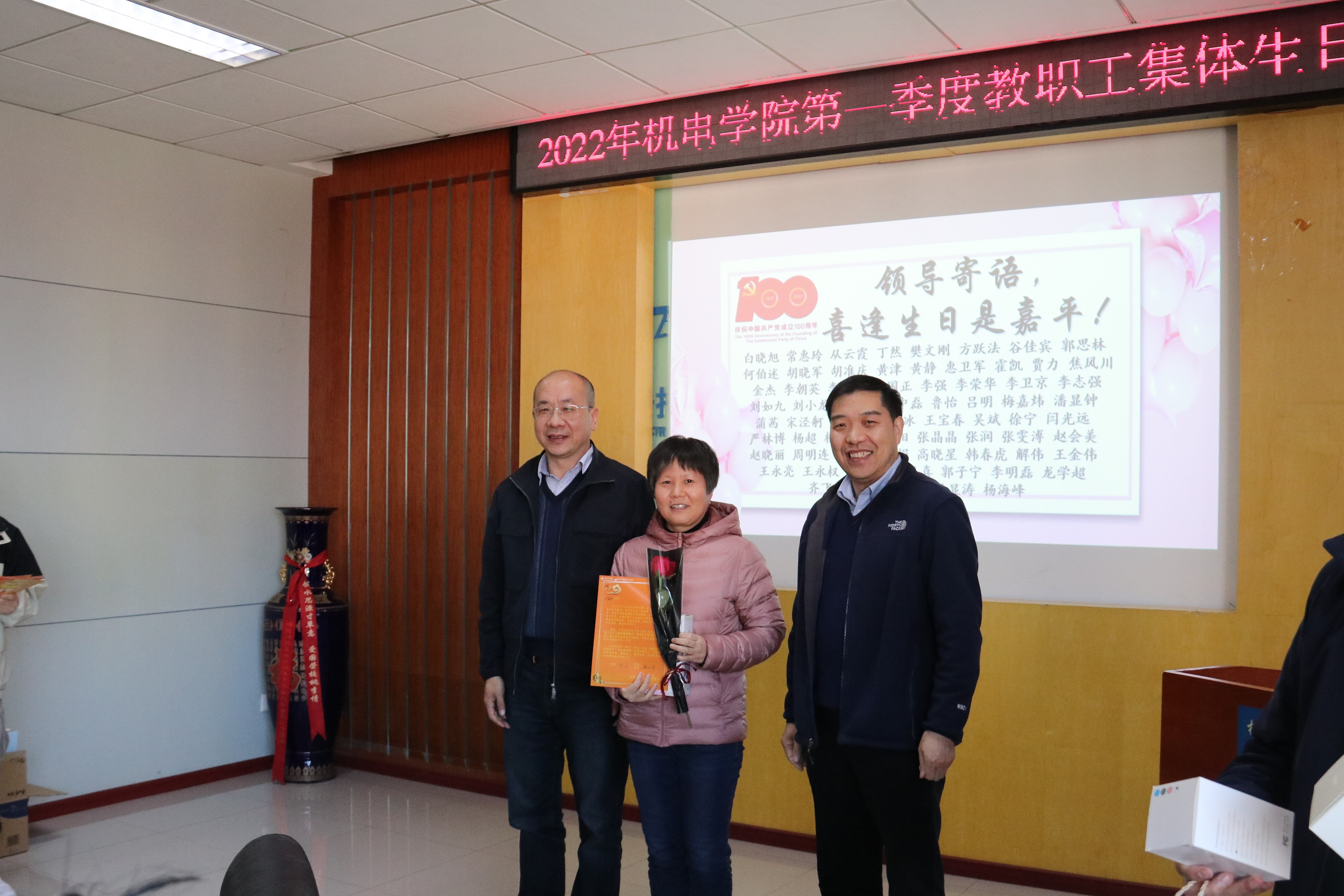 郭盛、魏旺强为每位寿星送上了鲜花、卡片和生日礼物。一支鲜花、一张卡片、一个小小的生日礼物,让教职工们受到了机电学院这个大家庭的温馨和温暖。