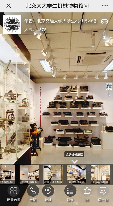 同时vr体验中植入了360°环物功能,可以全方位无死角查看Monarch打印机、胜家牌缝纫机、百代牌放映机,甚至可以超越在线下参观大学生机械博物馆的体验感。