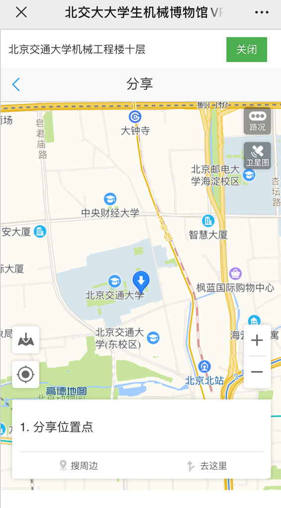 VR全景中还加入了定位导航服务,让参观者可以熟知博物馆地理位置,以后通过地图导航前往现场参观