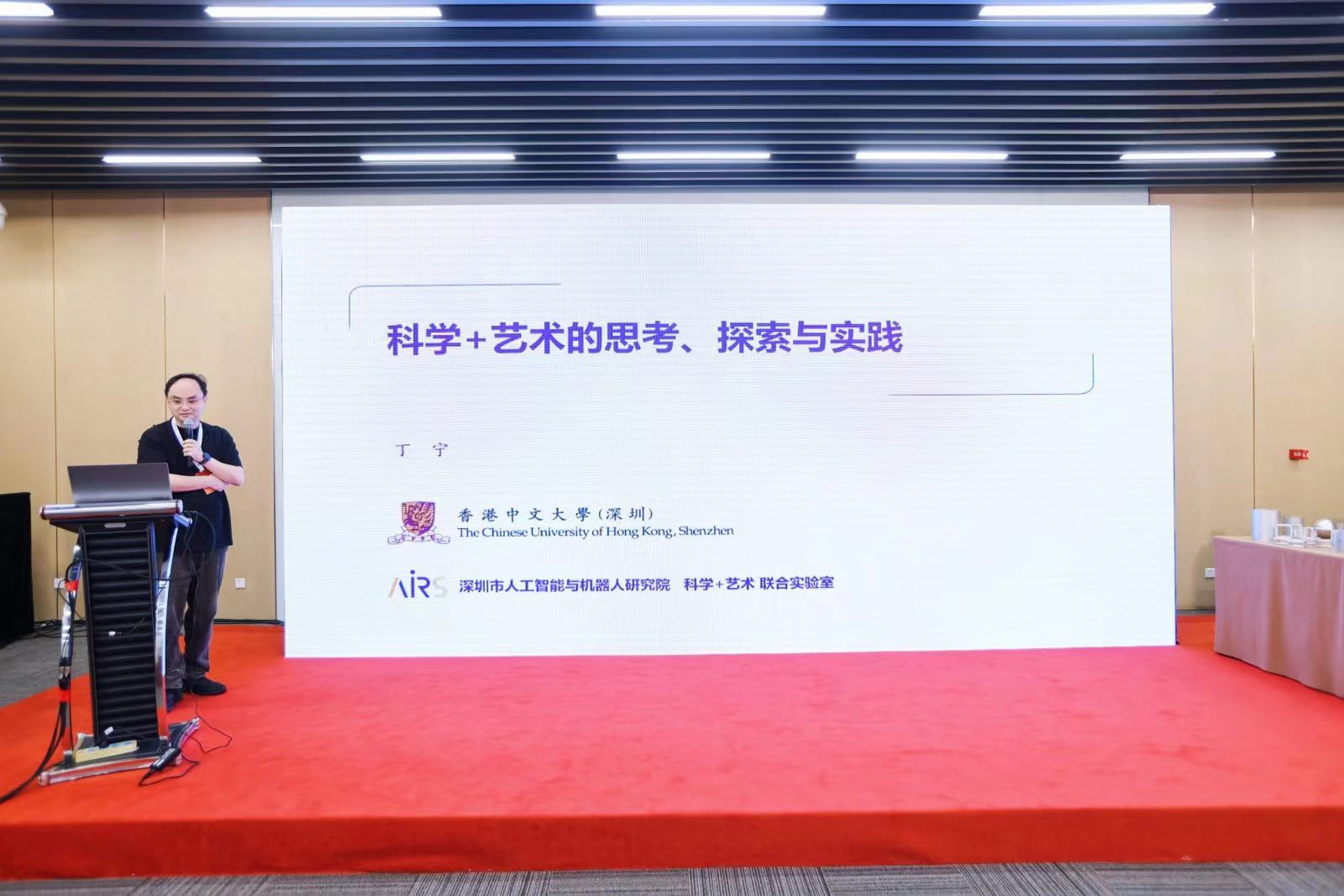香港中文大学(深圳)机器人与智能制造研究院副院长丁宁作了题为《科学+艺术的思考、探索与实践》的报告;中央美术学院设计学院数码媒体工作室主任、2023央视春晚视觉总监费俊教授作了题为《新媒体艺术与人工智能:创作者的边界》的演讲。