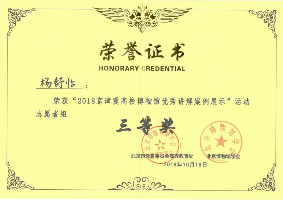 杨舒怡-获2018京津冀高校博物馆优秀讲解案例展示三等奖