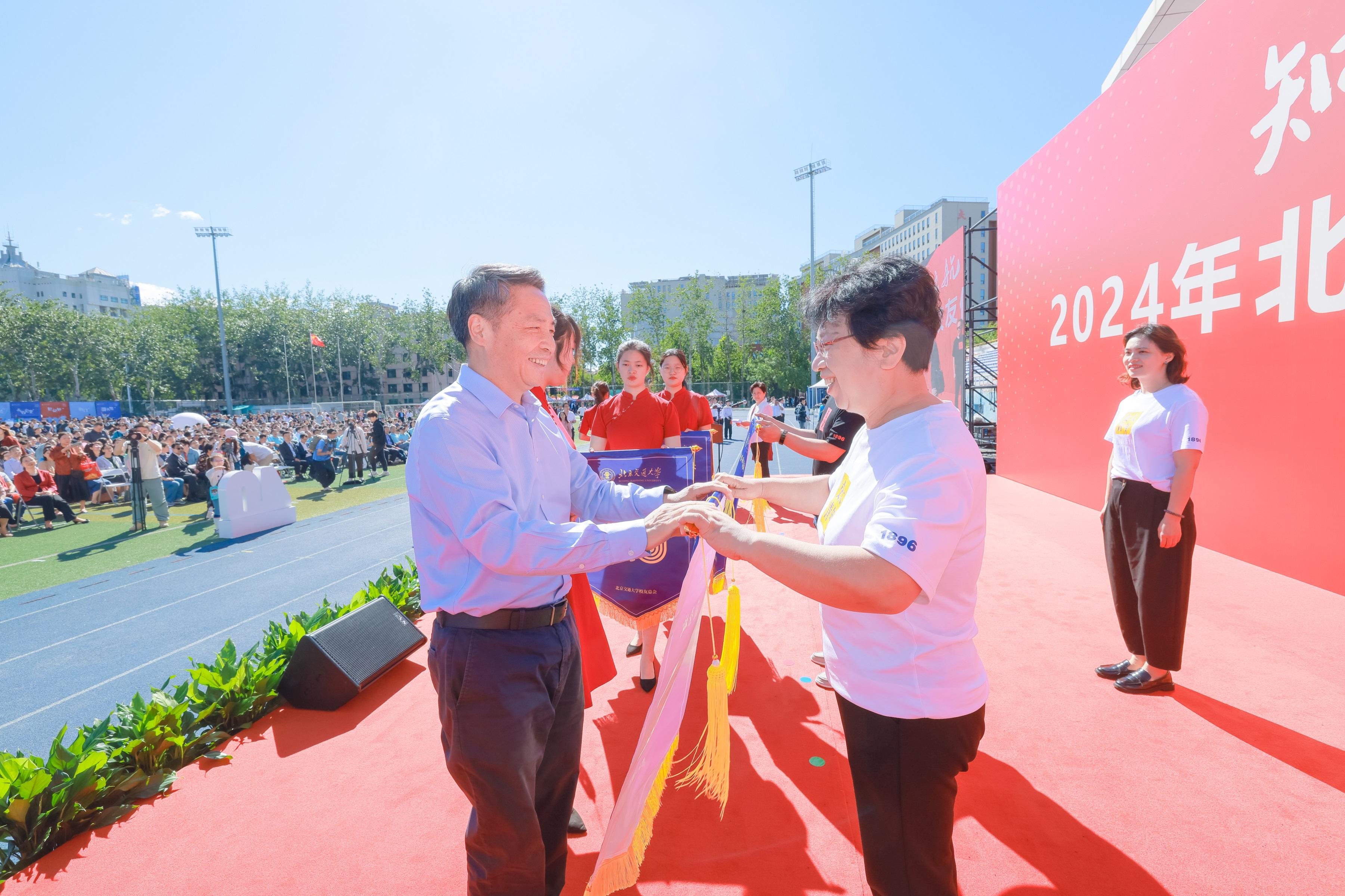 大会举办了校友值年交接仪式,王稼琼为值年交接代表授旗。