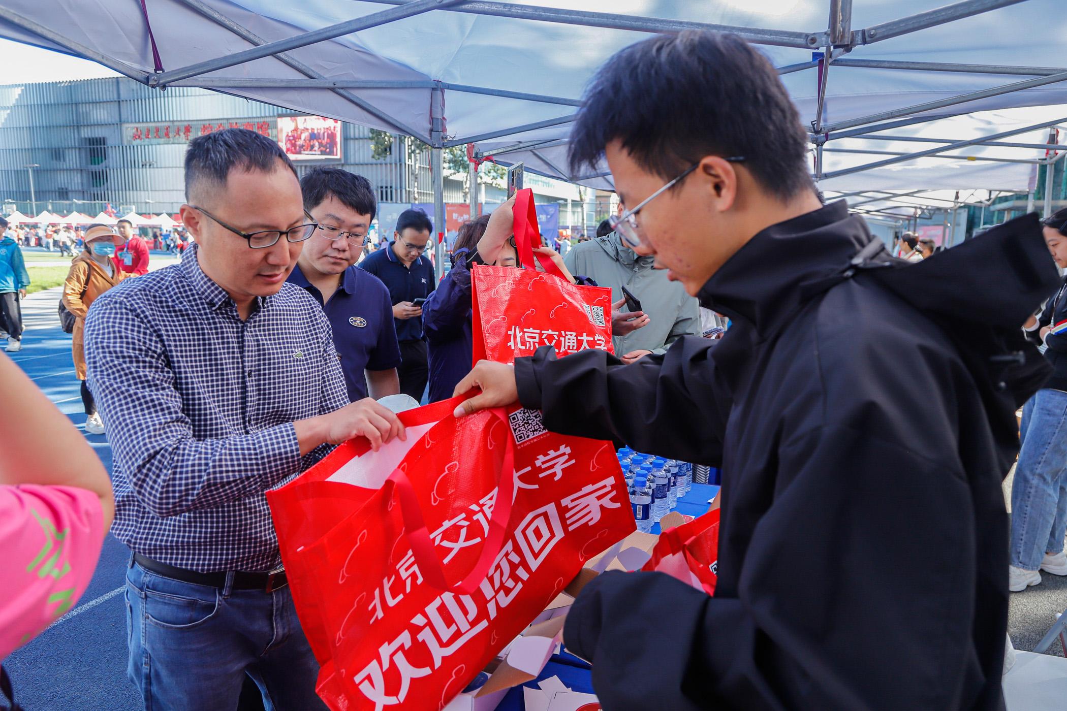 返校校友领取纪念品。