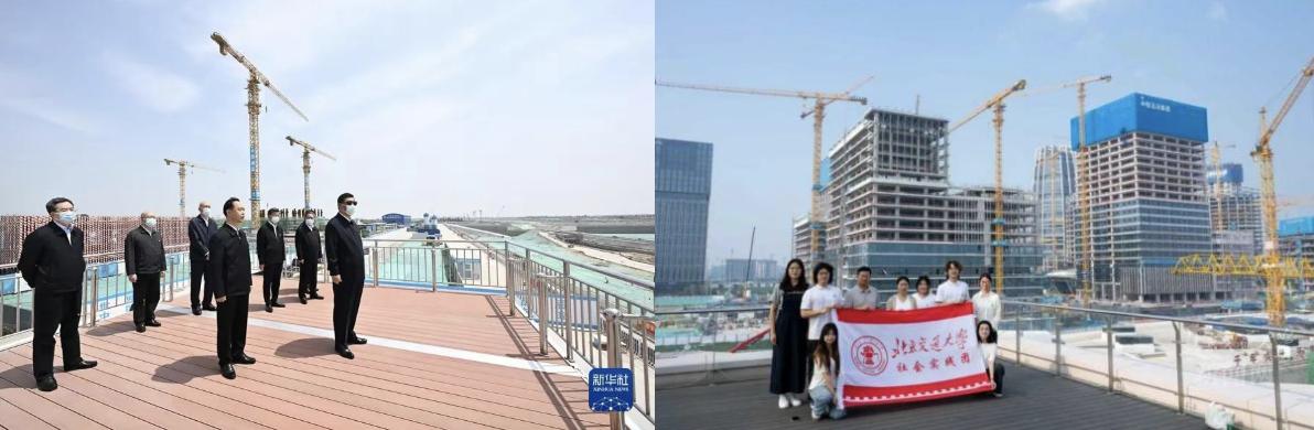 实践团前往东西轴线雄安城际站调度指挥中心,成员登上建设观景台,回想总书记曾站在此处做出“要在建设立体化综合交通网络上下功夫”的重要指示,在热火朝天的施工现场亲眼见证国内首个地下高铁站建设的壮丽图景,地上国贸繁荣商圈、地下核心交通枢纽、渡口即入白洋淀……“城中有站,站中有城”的规划理念在此处具象化彰显。