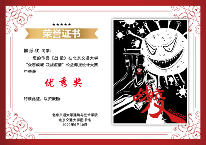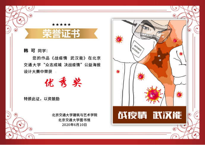 编者按:2020年2月-3月,图书馆和建筑艺术学院联合举办的“众志成城·决战疫情”公益海报大赛,活动发布后,10天之内,共收集到作品130份,参与人次102人。推广组对入围决赛的60份作品进行了网络展示与投票,不到一周时间内,征稿投票阅读量37万次,累计收到约1.6万票。经专家评委审定,最终评选出获奖作品共53份。
