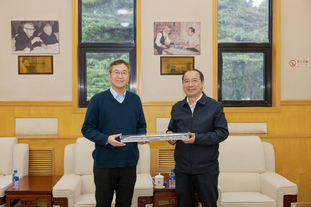 科学会堂座无虚席,中国科学院院士、国际著名数学家、中国计算数学界领军人物袁亚湘为2025级本科生讲授大类专业导论课“计算:第三种科学方法”。课程开始前,校党委常委、副校长李国岫与袁亚湘进行了深入交流。