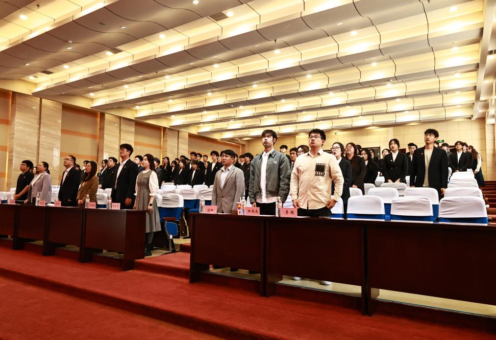 全体参会人员起立,齐唱《光荣啊!中国共青团》。