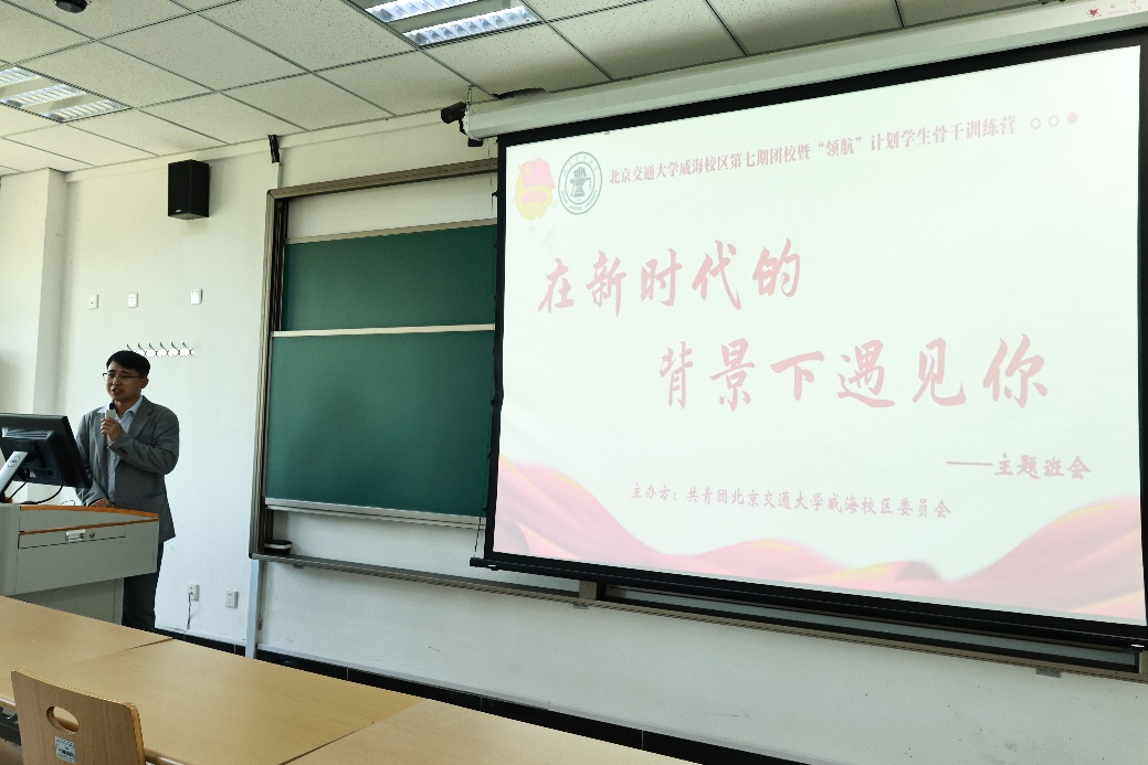 To thoroughly study and implement the guiding principles of the 20th CPC National Congress and the Second and Third Plenary Sessions of the 20th Central Committee, and to better understand General Secretary Xi Jinping’s important thoughts on youth work, mark a solid step toward advancing the implementation of the "First Lecture of Youth Political Education” Curriculum Framework of BJTU, the Youth League Committee of Weihai Campus held the opening ceremony of the 7th Youth League School and the “Navigator” Student Cadre Training Camp on the afternoon of May 18 at the Academic Exchange Center.