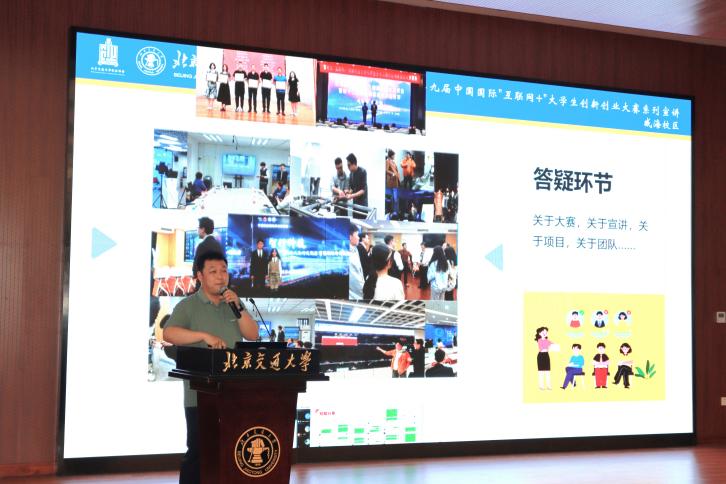 宣讲会上,董瑞从大赛时间安排、国际赛道介绍、常见问题解析等方面为同学们了详细解读,鼓励同学们积极参赛,勇创佳绩。马莹从“互联网+”备赛要点及材料撰写等方面为同学提出了合理建议。第八届“互联网+”产业命题赛道全国银奖项目学生负责人甘振良结合亲身经历,分享国奖团队经验。
